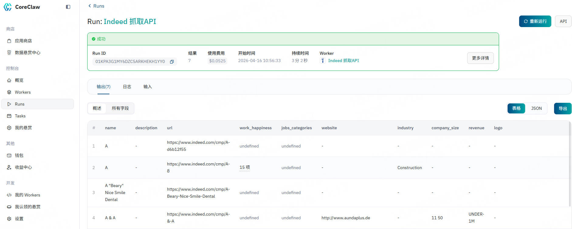 CoreClaw Indeed 企业列表抓取工具在后台为您处理代理轮换、任务调度、数据标准化和最终交付。只需几分钟,您就可以通过以下步骤获取数据: