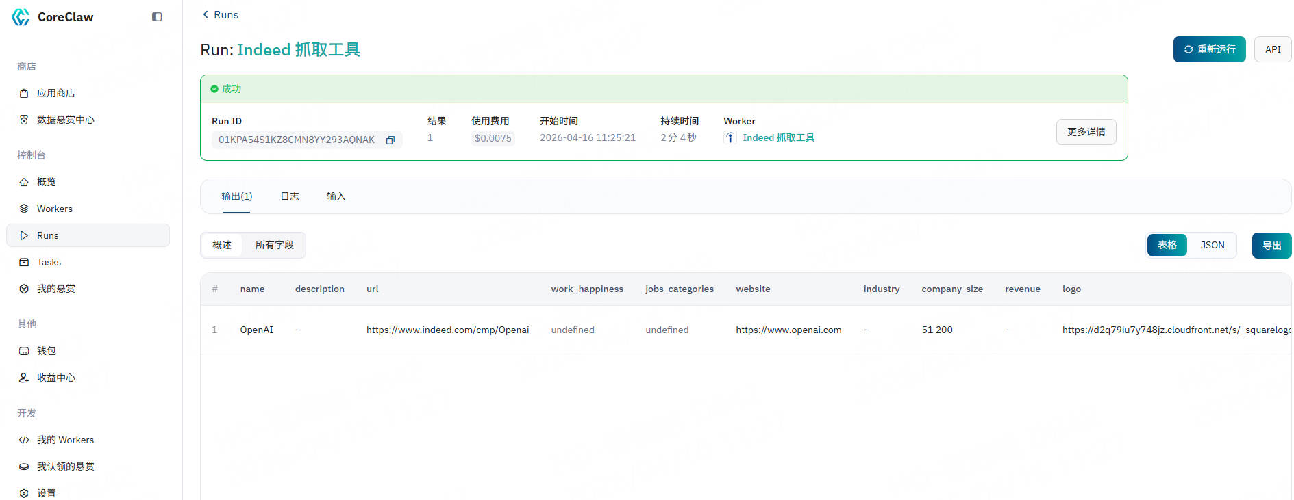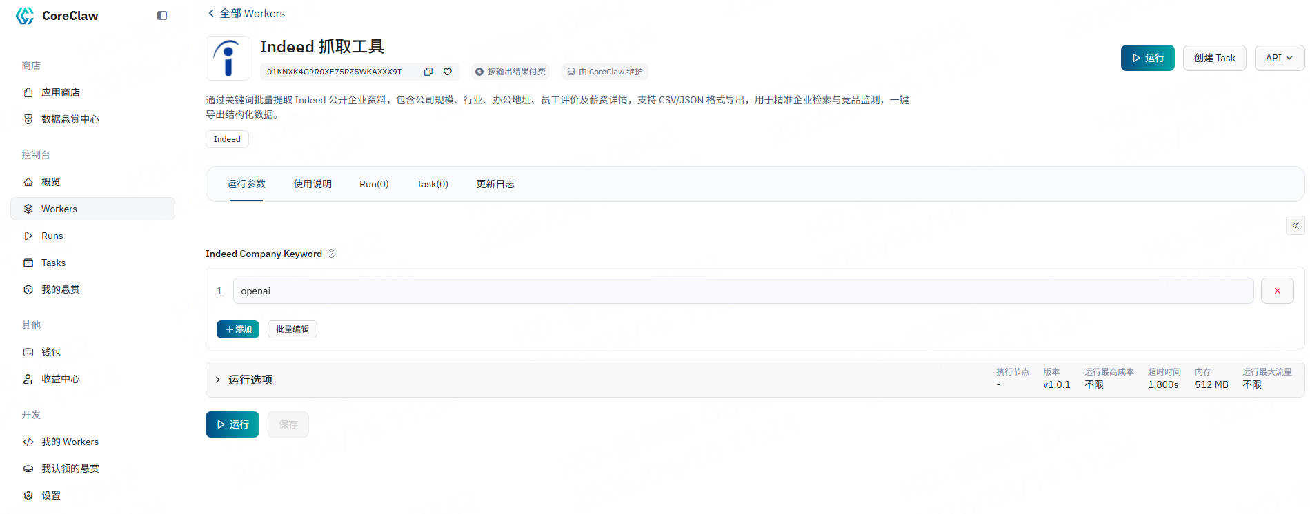 CoreClaw Indeed 抓取工具在后台为您处理代理轮换、任务调度、数据标准化和最终交付。只需几分钟,您就可以通过以下步骤获取数据: