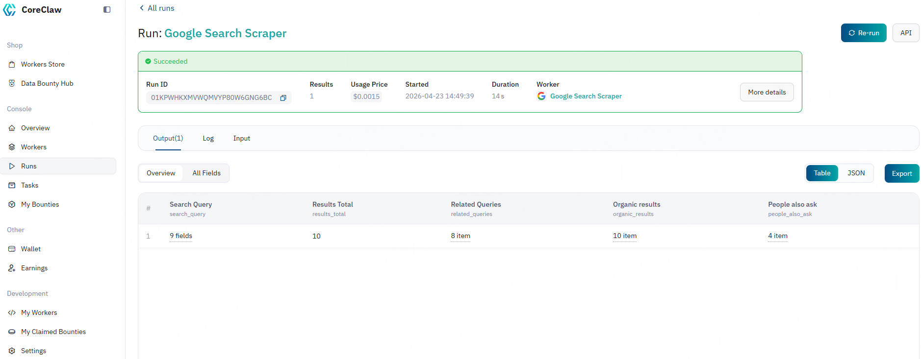 Google Search Scraper is an automated data extraction tool designed to batch collect organic search results, related queries, People Also Ask, AI Overviews, and other data from Google search result pages. With CoreClaw, you can get structured data without any coding.