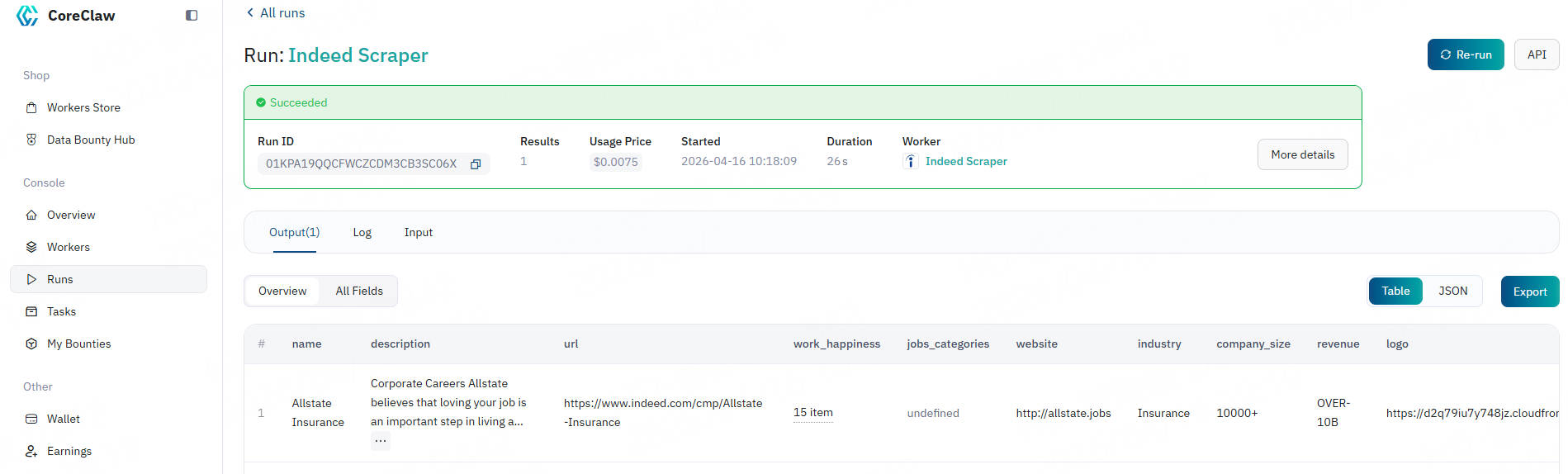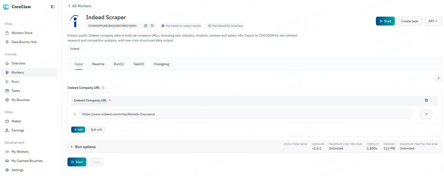 CoreClaw Indeed Company Scraper Tool handles proxy rotation, task scheduling, data normalization, and final delivery for you in the background. In just a few minutes, you can obtain data through the following steps: