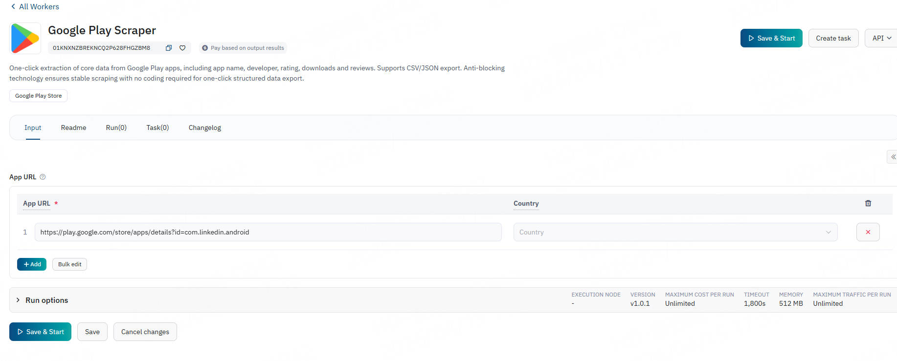 Input the Google Play app detail page links you want to scrape. You can add single app links or batch add multiple links.